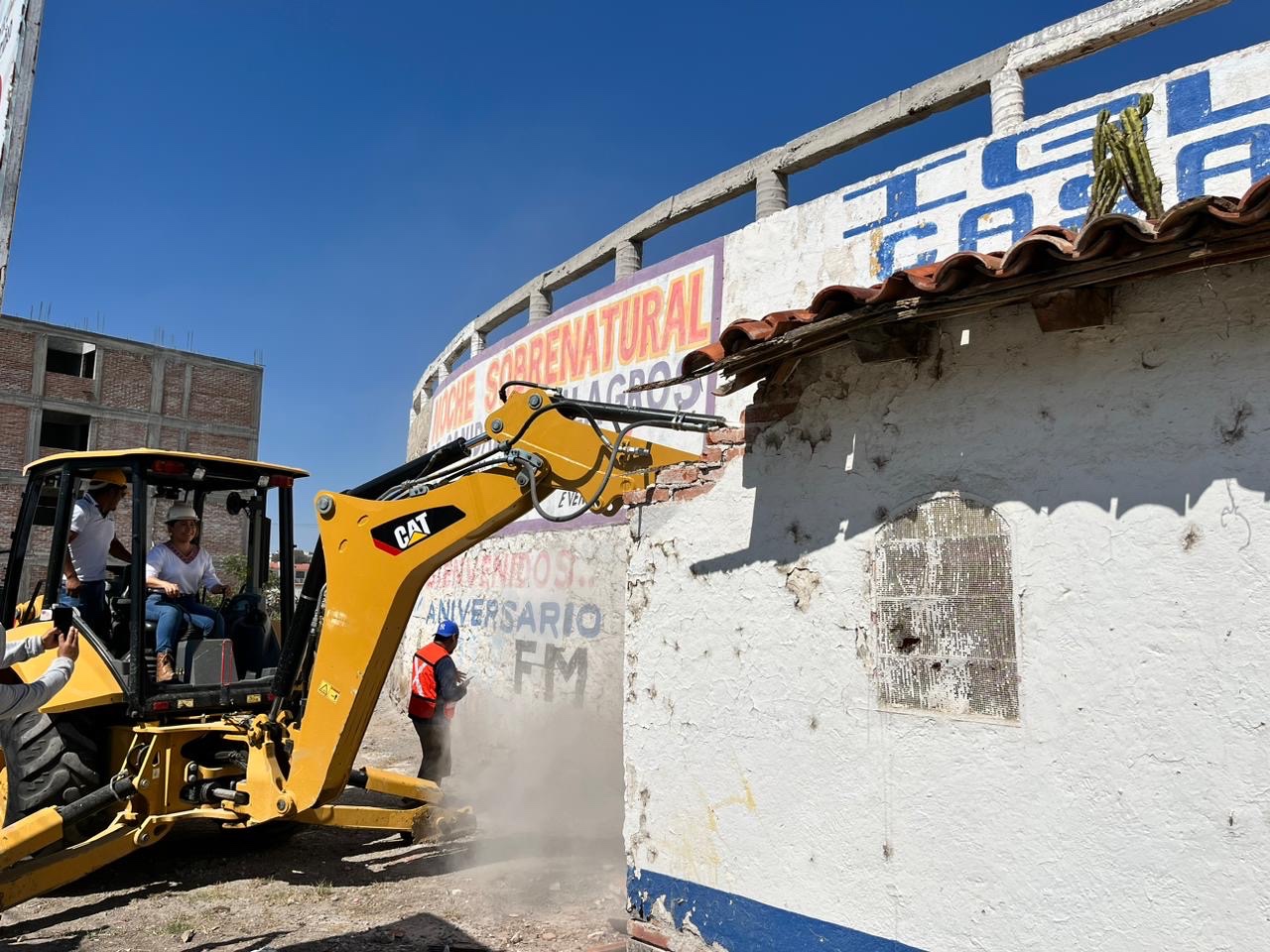 Finalmente la edila Araceli Beltrán, junto a los funcionarios Marcelino Capula, director de protección civil; Mario Ibarra, secretario de Seguridad Pública; Rubén Ñonthe, director de Obras Públicas; y losasambleístas Noradina Lora, Edith Domínguez, Minerva Almaraz, Santos González y Álvaro López,realizaron un recorrido por el ruedo, para después, con la ayuda de maquinaria pesada de manera simbólica comenzar con la demolición del inmueble.