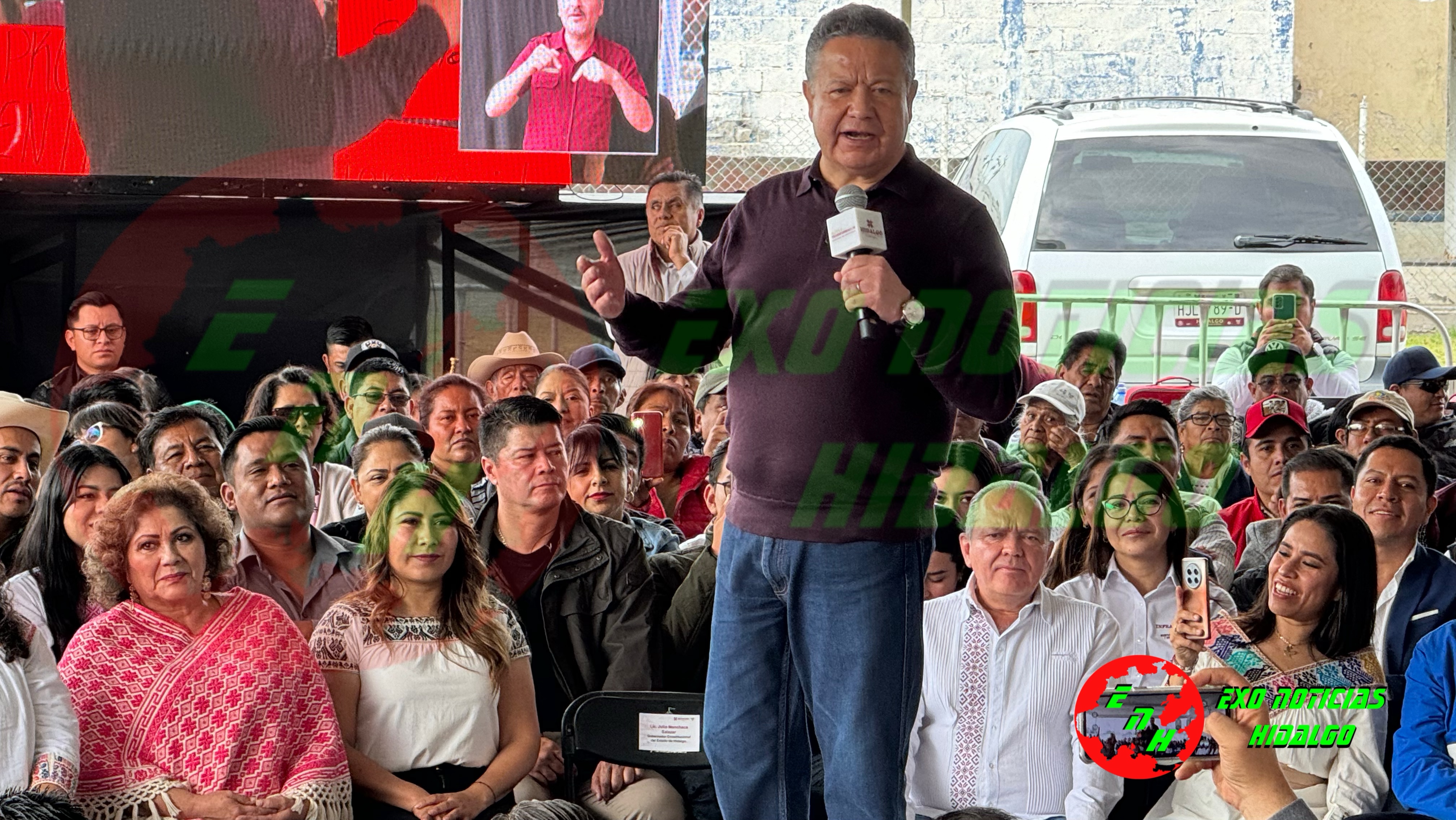 La presidenta municipal de Ixmiquilpan, Araceli Beltrán Contreras, junto al secretario general Rutilio Pérez Hernández, los pobladores, delegados Fernando Sánchez…